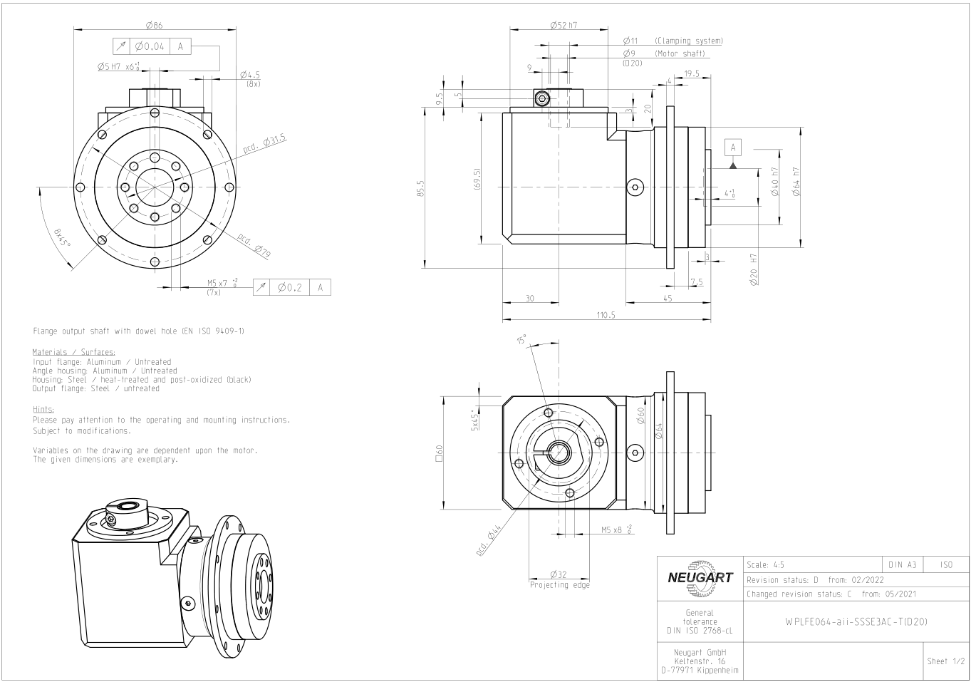 Example of internal dimension drawing of WPLFE planetary gearbox: